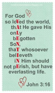 “For God so loved the world that he gave his one and only Son, that whoever believes in him shall not perish but have eternal life.” -John 3:16